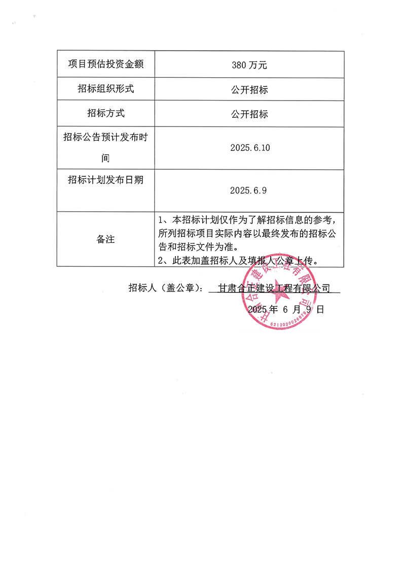 項(xiàng)目招標(biāo)計(jì)劃