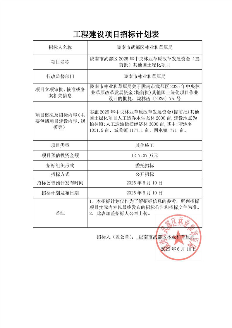 隴南市武都區(qū)2025年中央林業(yè)草原改革發(fā)展資金(提前批)其他國(guó)土綠化項(xiàng)目
