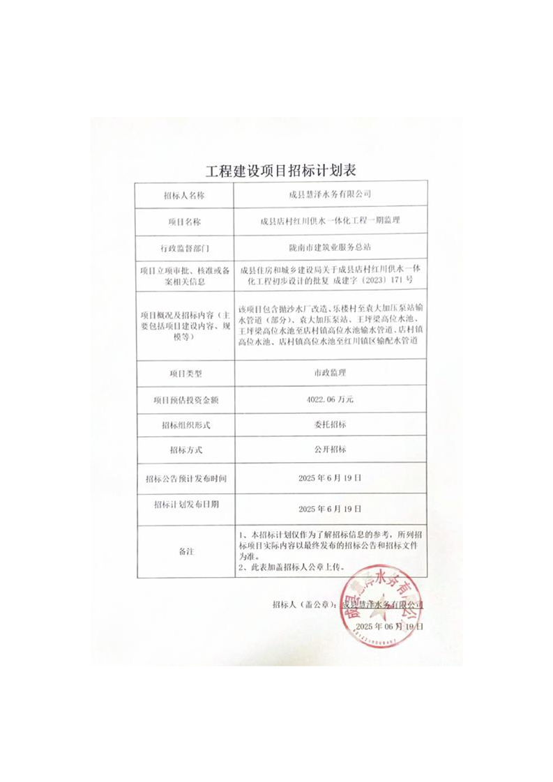 成縣店村紅川供水一體化工程一期監(jiān)理