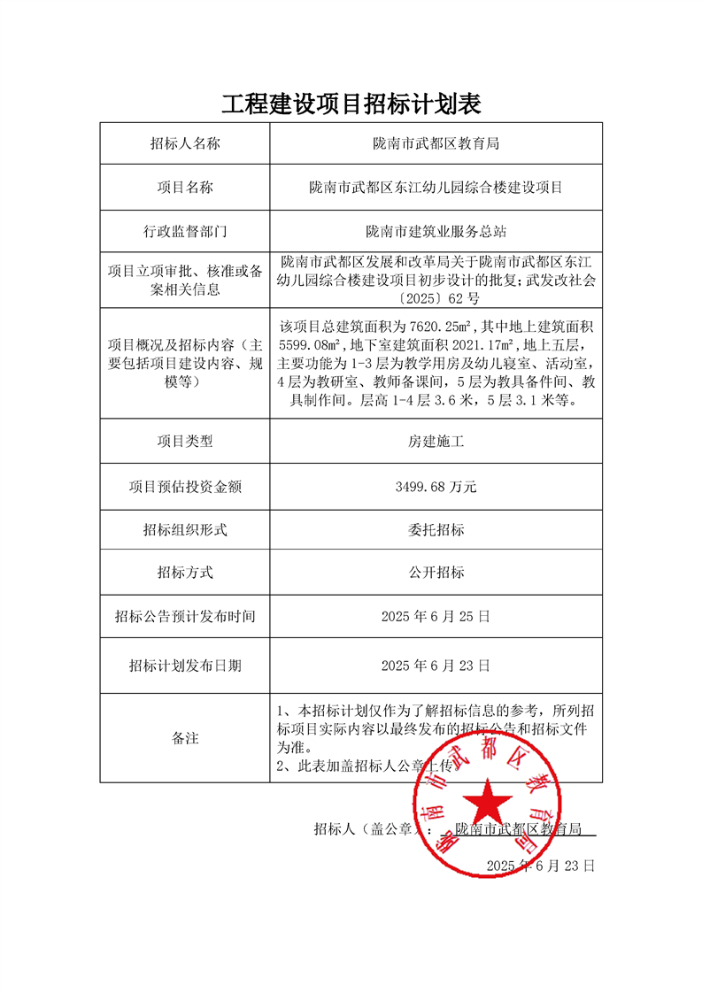 隴南市武都區(qū)東江幼兒園綜合樓建設(shè)項目