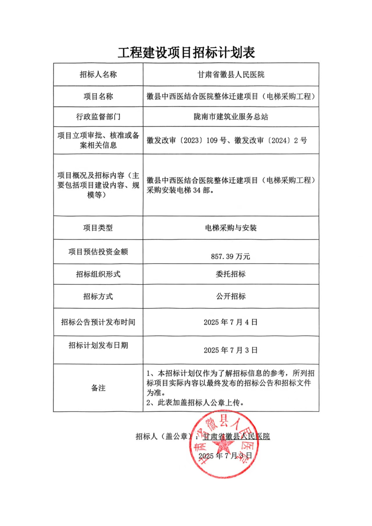 徽縣中西醫(yī)結(jié)合醫(yī)院整體遷建項(xiàng)目(電梯采購工程)