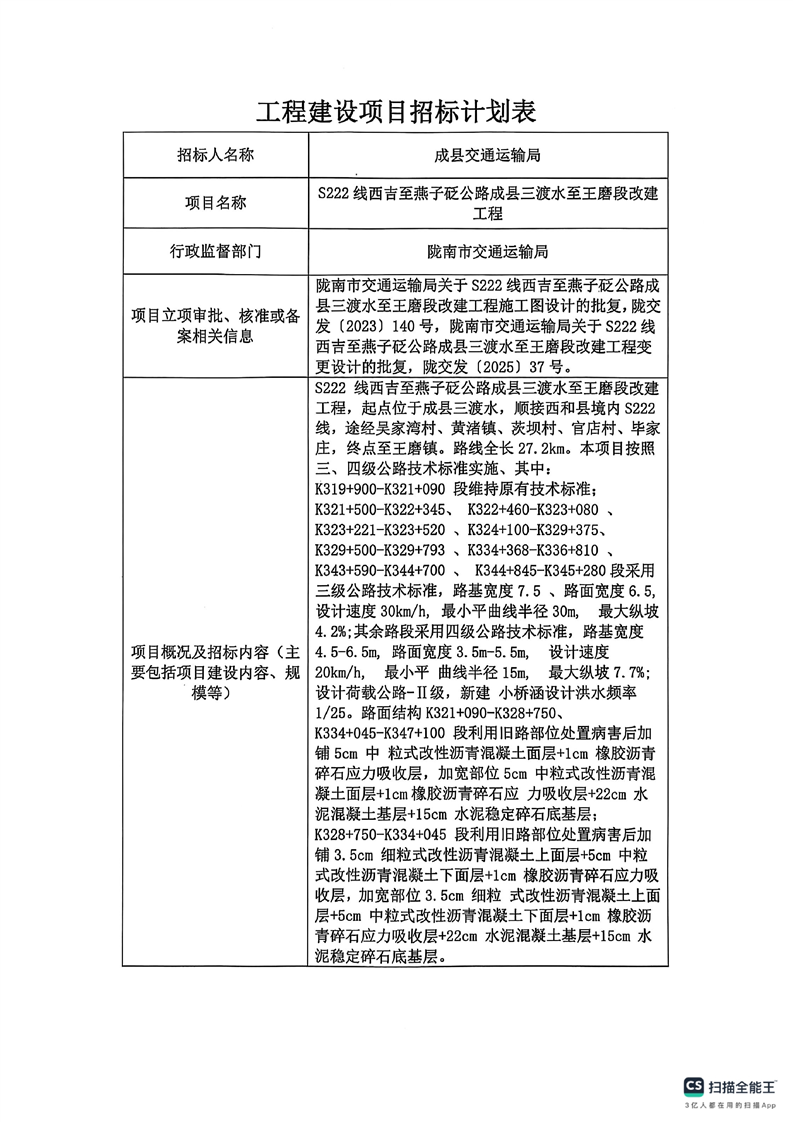 S222線西吉至燕子砭公路成縣三渡水至王磨段改建工程