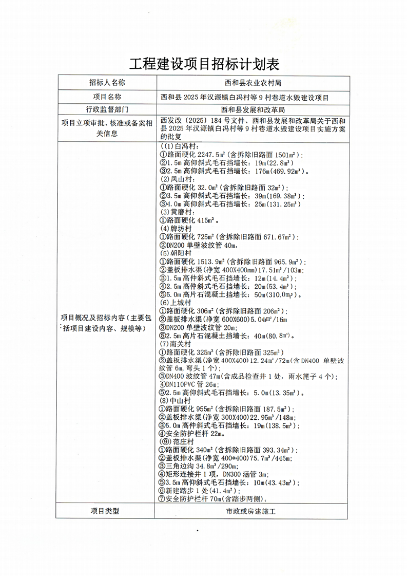 西和縣2025年漢源鎮(zhèn)白馮村等9村巷道水毀建設項目