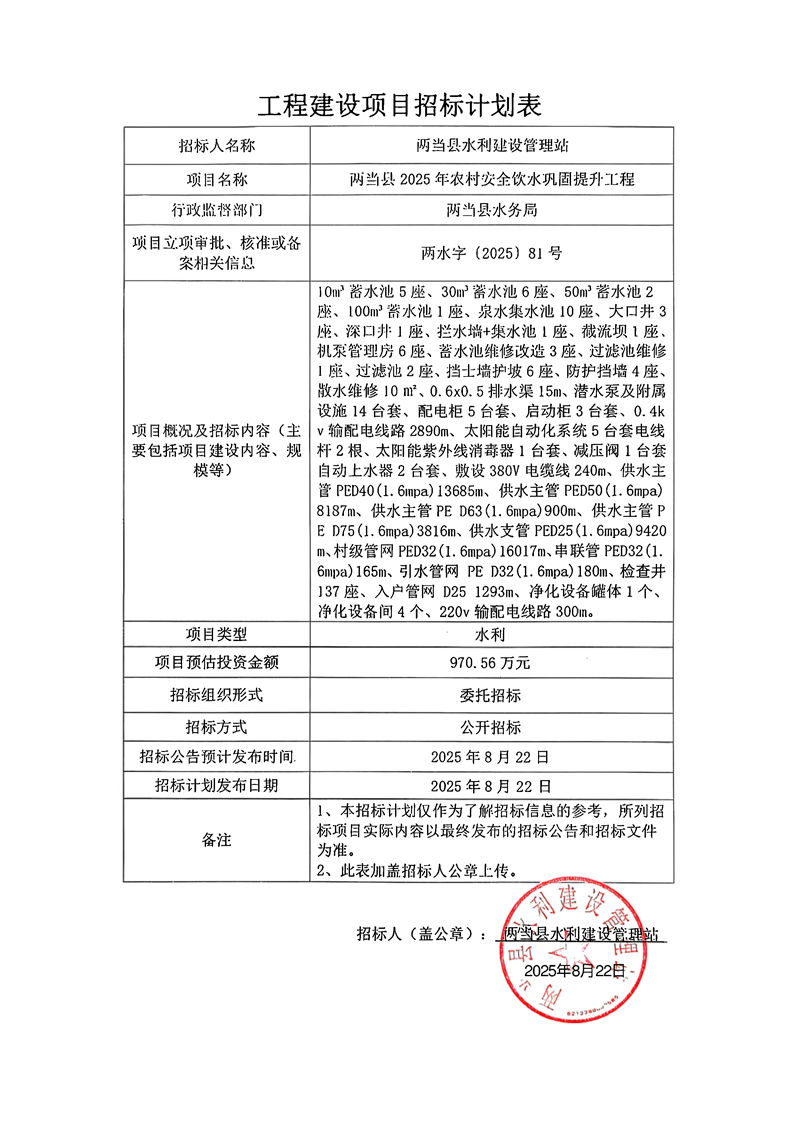 兩當縣2025年農(nóng)村安全飲水鞏固提升工程
