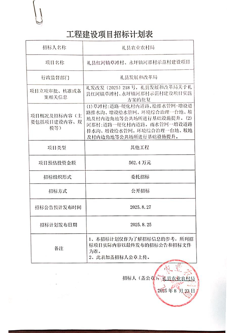 招標(biāo)計劃-禮縣紅河鎮(zhèn)草灘村、永坪鎮(zhèn)河那村示范村建設(shè)項目.pdf