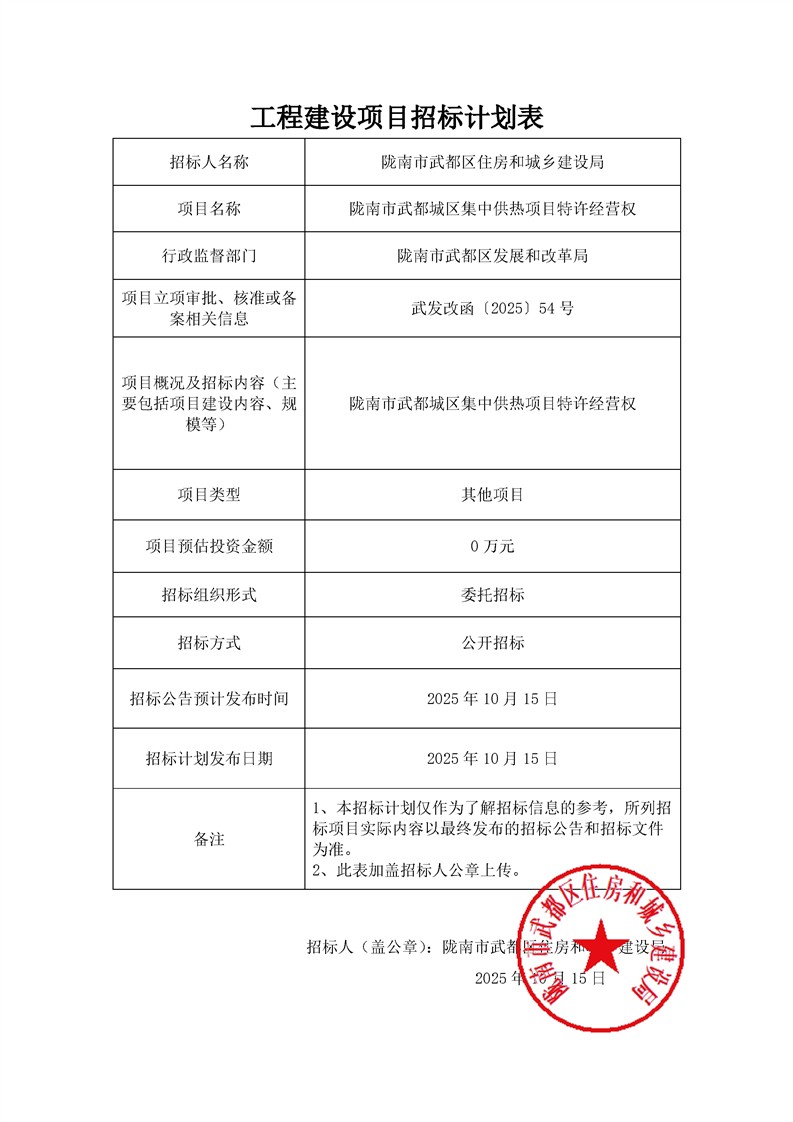 隴南市武都城區(qū)集中供熱項目特許經(jīng)營權(quán)