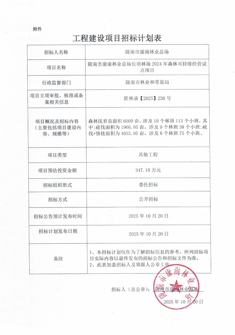 隴南市康南林業(yè)總場(chǎng)長壩林場(chǎng)2024年森林可持續(xù)經(jīng)營試點(diǎn)項(xiàng)目