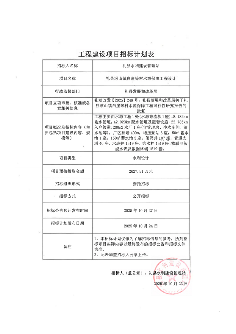 禮縣湫山鎮(zhèn)白崖等村水源保障工程設計