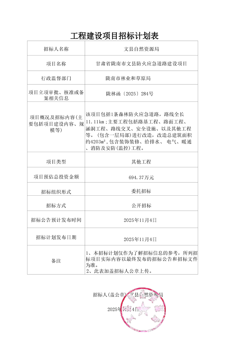 甘肅省隴南市文縣防火應(yīng)急道路建設(shè)項目
