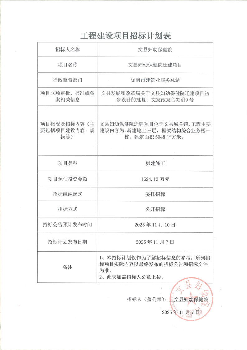 文縣婦幼保健院遷建項(xiàng)目