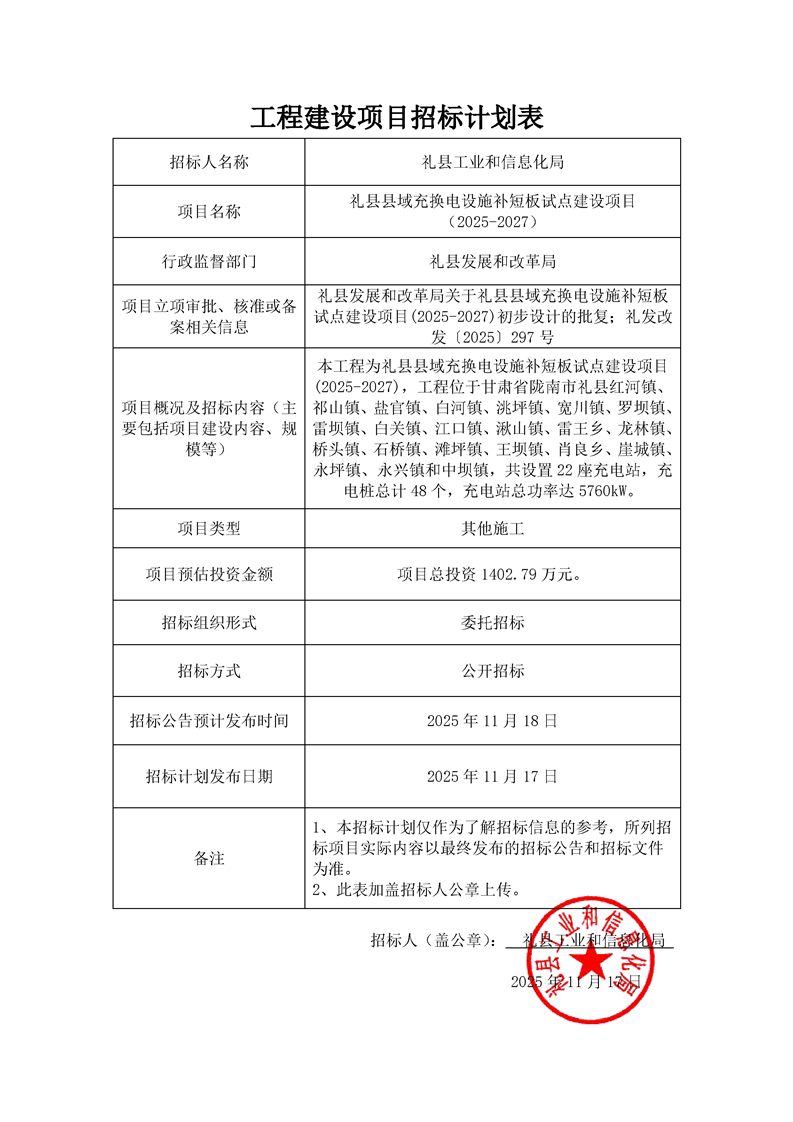 招標計劃—禮縣縣域充換電設施補短板試點建設項目(2025-2027).pdf