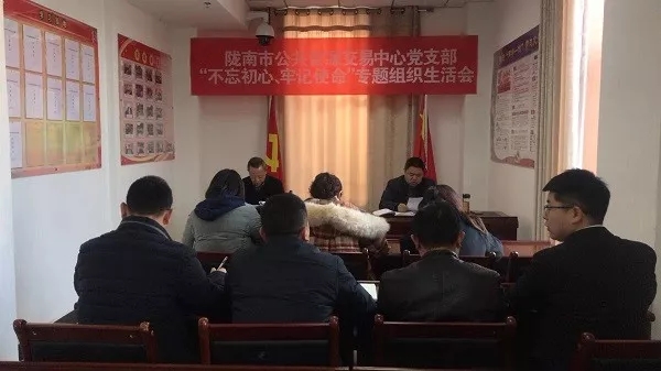 按照市委“不忘初心、牢記使命”主題教育領(lǐng)導(dǎo)小組《關(guān)于主題教育單位基層黨組織召開專題組織生活會和開展民主評議黨員的通知》(隴教組發(fā)〔2019〕16號)要求,12月9日,市公共資源交易中心召開了“不忘初心、牢記使命”專題組織生活會暨民主評議黨員會議,中心支部書記、副主任姜五軍主持,全體黨員干部參加了會議。