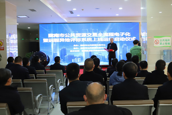 啟動(dòng)儀式上,中心黨組書(shū)記、主任張巍做了致辭,并向參會(huì)嘉賓播放了市公共資源交易中心工作匯報(bào)專(zhuān)題視頻。隨后大家通過(guò)大屏幕觀看了隴南-定西兩地評(píng)委實(shí)時(shí)遠(yuǎn)程異地評(píng)標(biāo)情景畫(huà)面;兩地專(zhuān)家準(zhǔn)備就緒后,與會(huì)領(lǐng)導(dǎo)發(fā)送系統(tǒng)啟動(dòng)指令,共同見(jiàn)證了隴南市公共資源交易全流程電子化暨遠(yuǎn)程異地評(píng)標(biāo)系統(tǒng)上線運(yùn)行。
